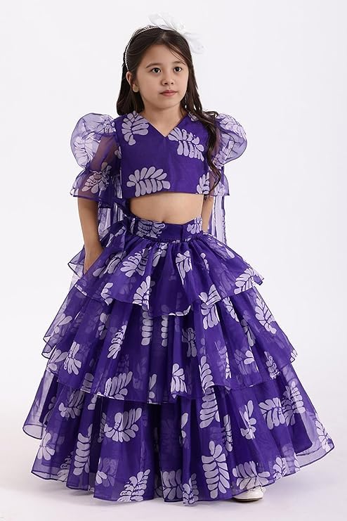 Naixa Girls Navy Blue Printed Organza Lehenga Choli Set | Ready to Wear Lehenga Choli Set | Lehenga Choli Set for Girls | Lehenga Choli Set for Kids (SE07)