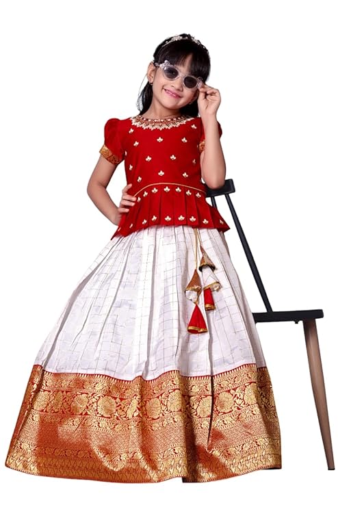 White Button Girl’s Silk Blend Readymade Lehenga Choli