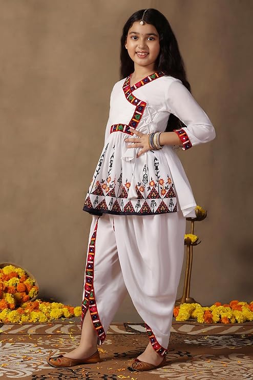 Fashion Dream Girl’s Cotton Blend Printed Crop Top and Dhoti Set | Ethnic Set