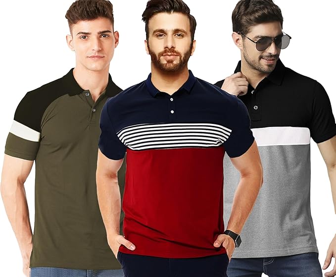 LEOTUDE Men’s Matty Regular Fit Half Sleeve Polo T-Shirt Combo (Pack of 3)