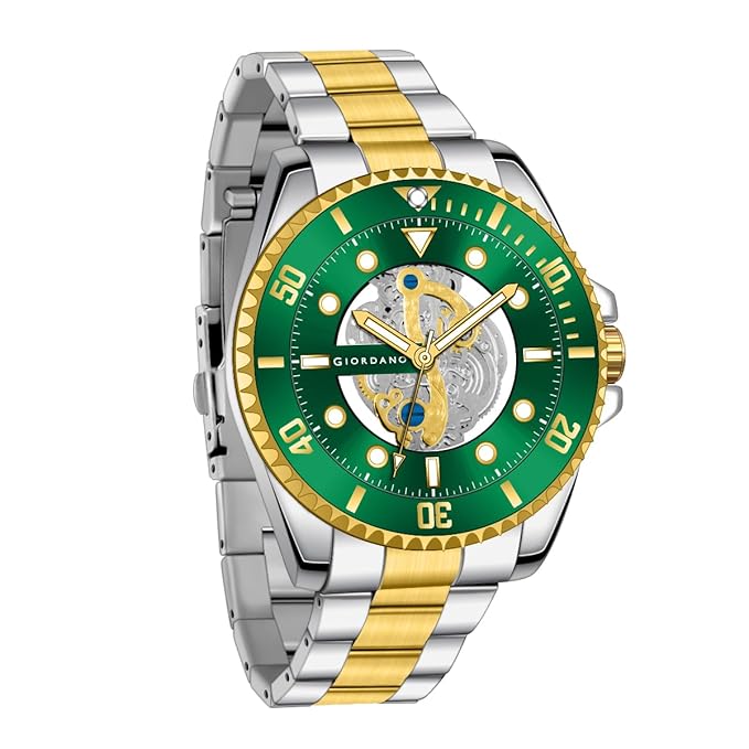 Giordano Analog Watch for Men– Skeleton Dial, Rotating Bezel, Two-Tone Stainless Steel Strap