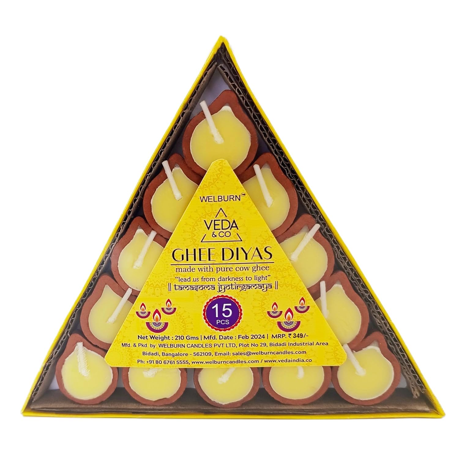 Welburn Veda&Co® Pure Cow Ghee Diya 15 pcs for Puja & Diwali Decoration | Upto 50-55 Burn time | Smoke Free | Diyas for Pooja Havans & Religious Rituals,Festivals | Ready to use