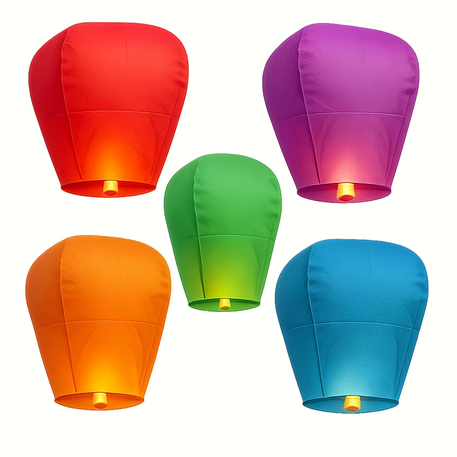 COTTONTEE Paper Sky Lantern Assorted Colour Hot Air Balloon for Diwali/Christmas/Marriage/All Festival with Fuel Wax Candle for Birthday New Year (Pack of 5)